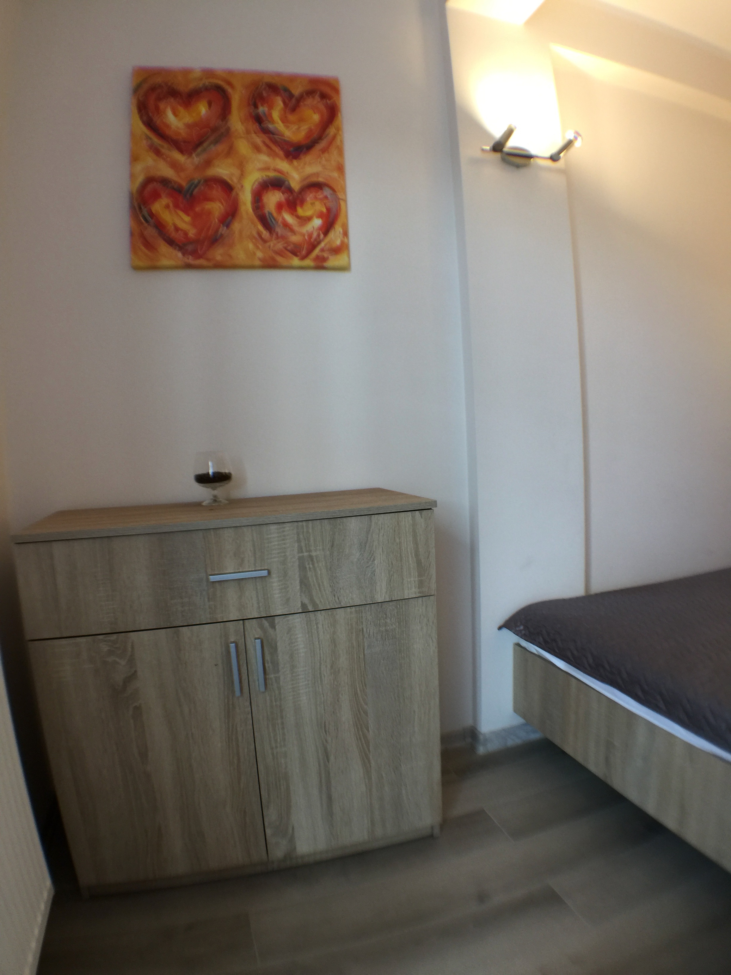 Ładnie oraz nowocześnie urządzony, jednopokojowy apartament, położony jest na I piętrze w  czteropiętrowym budynku       z windą. W najbliższym otoczeniu znajdują się sklepy, punkty uługowe oraz przystanek niemieckiej kolejki „UBB”, z którego można bezpośrednio dojechać do pobliskich miejscowości po drugiej stronie granicy.