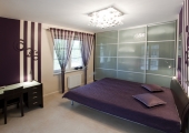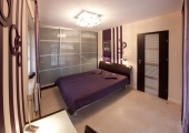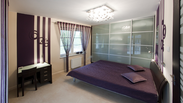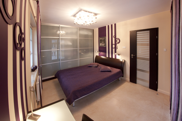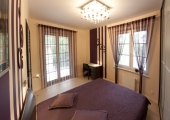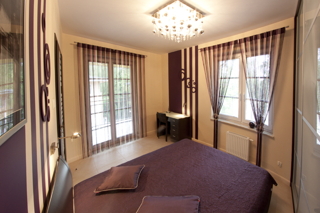 W sypialni jest duże wygodne łóżko małżeńskie, duża szafa wnękowa, w której zmieszczą się z pewnością wszystkie bagaże, lampki nocne, małe biurko z krzesłem oraz lampką.